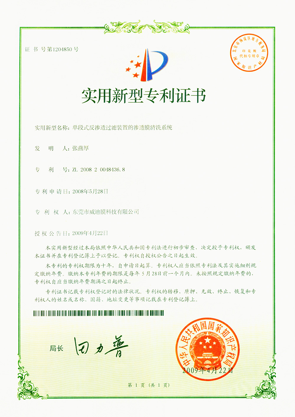 單段式反滲透過濾裝置的滲透膜清洗系統(tǒng)